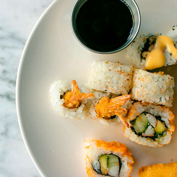 Assorted vegetable wrapped in a thin, crispy shell and fried